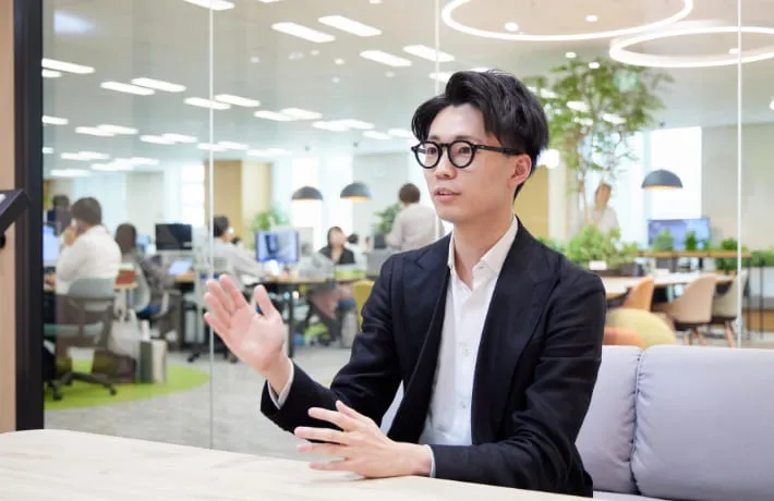 現在は建設部のオフィス環境設計グループに所属し、主に東京海上のグループ会社や関連会社が入居しているオフィスのデザインを手掛ける仕事をしています。端的に言えば、一般住宅で言うところのインテリアプランナーさんのオフィス版の仕事といったイメージ。具体的な仕事内容としては、CADをつかった図面の作成、お客様や協力会社との打ち合わせ、見積もりの査定、工事の進行管理などを行っています。